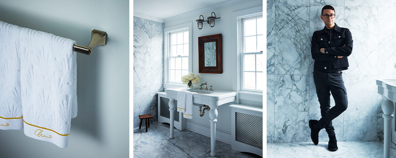 Siriano a découvert DXV lors de la rénovation de la salle de bains principale de sa maison d'Easton, dans le Connecticut, vieille de 279 ans. En intégrant la collection Belshire, le créateur de mode emblématique a été séduit par la qualité et le raffinement des produits, en parfaite harmonie avec le travail artisanal exceptionnel qui imprégnait sa demeure historique. Lorsque DXV a proposé à Siriano de collaborer à la création d'un ensemble peignoir et serviette de toilette de luxe en édition limitée, le créateur s'est inspiré de sa nouvelle collection Belshire pour capturer la richesse et l'intemporalité de l'âge d'or des années 1920.